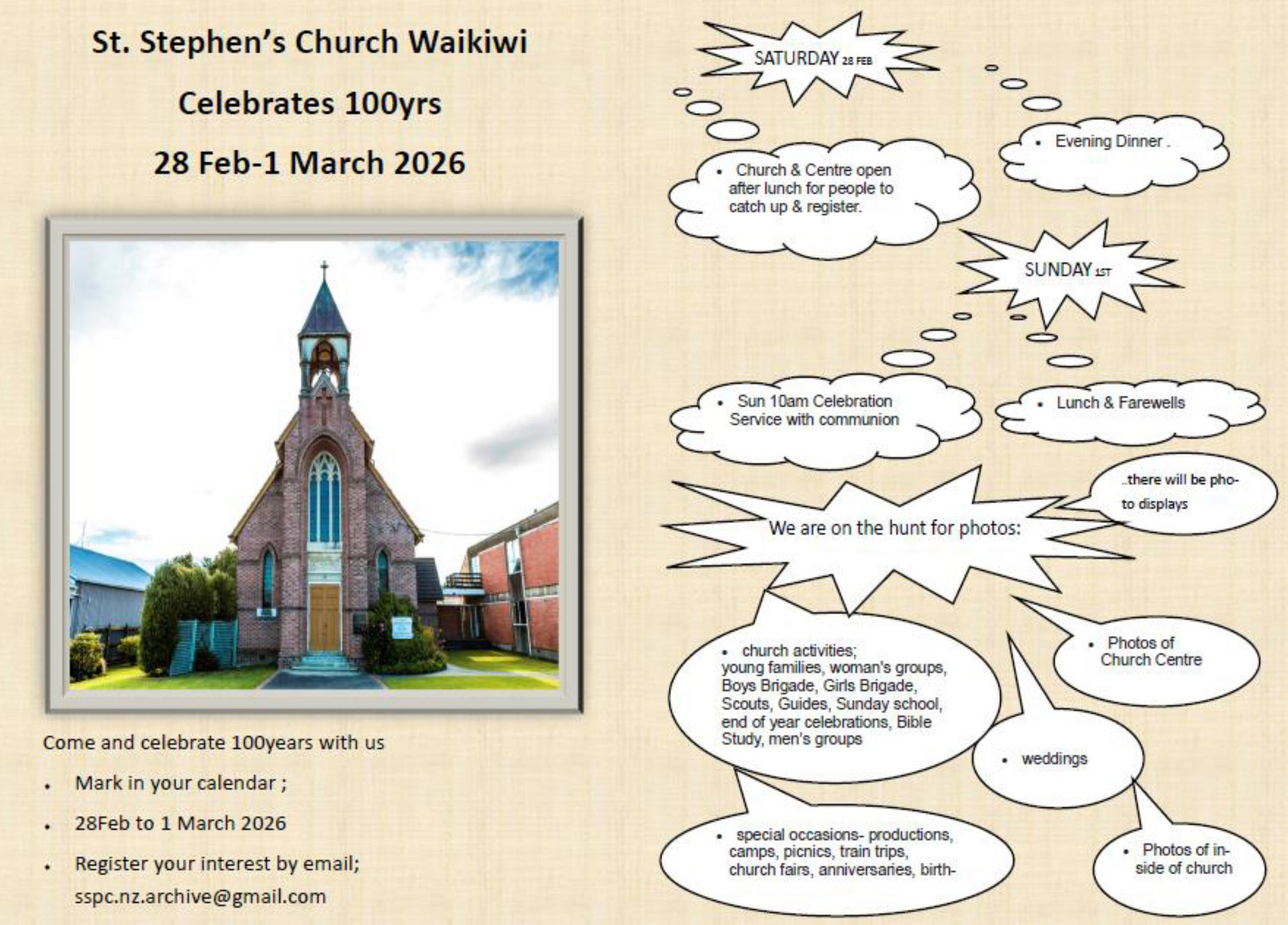 St Stephen's Presbyterian Church Waikiwi, Invercargill 100th Celebration
